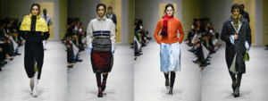 This season in Milan, that evolution was almost imperceptible at first glance. The silhouettes remained anchored in what the house does best: long, linear coats falling close to the body, narrow trousers extending the line rather than breaking it, dresses cut with an almost architectural precision. Nothing distracted from the structure. Nothing attempted to seduce through drama.